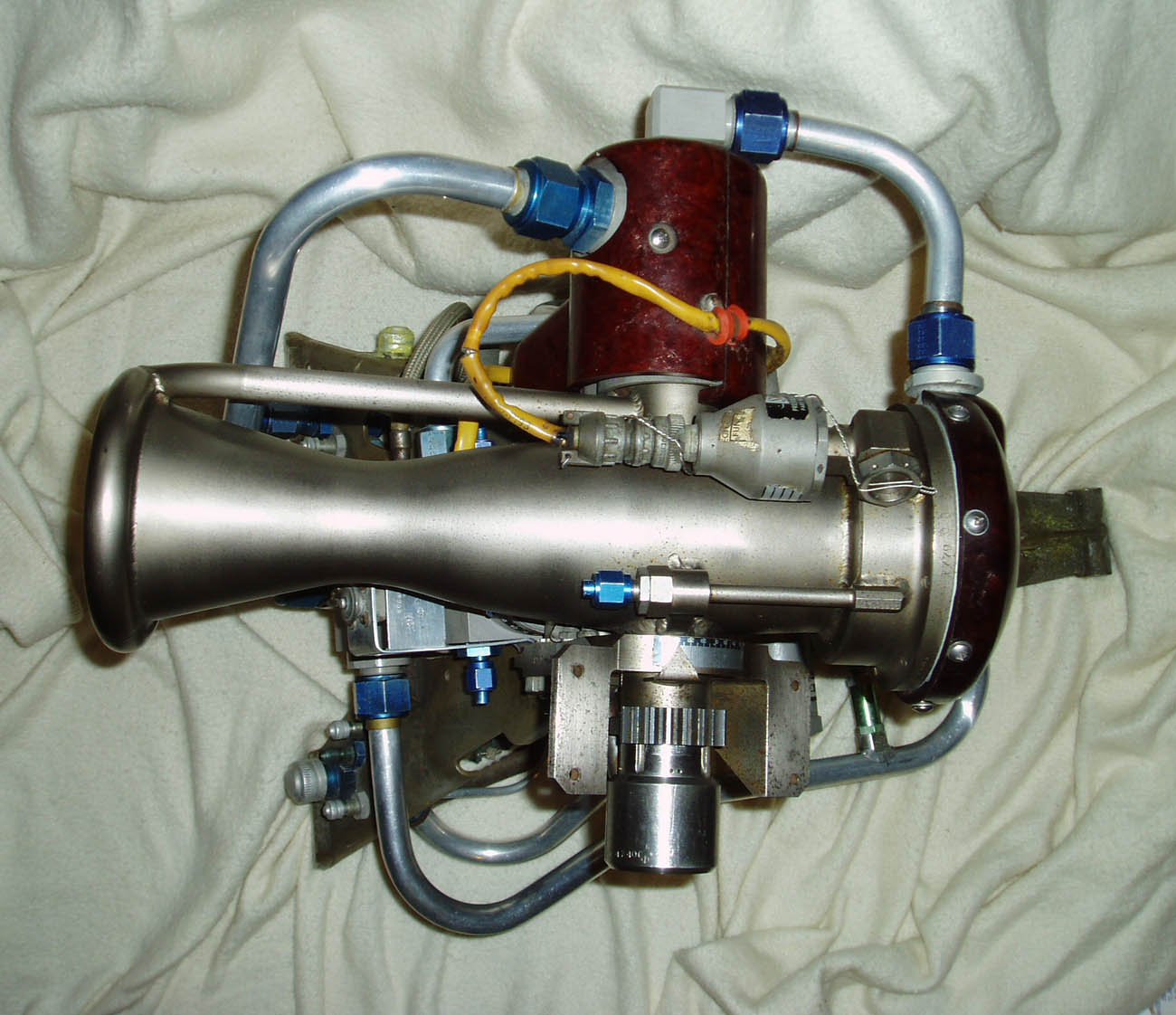 An LR101-NA Vernier rocket engine assemblage manufactured by ROCKETDYNE